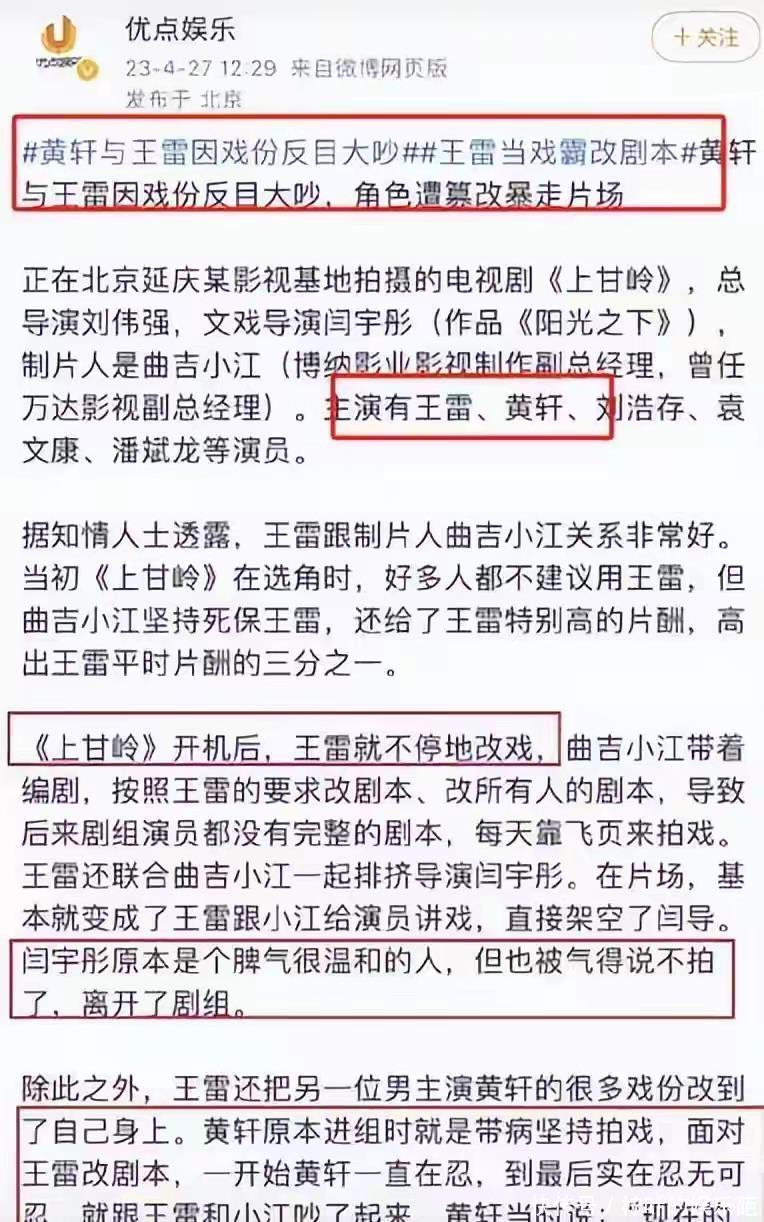 拍《陆战之王》时,他因一条微博暗指用替身惹来非议;《上甘岭》时间又被以为私行改脚本,加戏导致黄轩发火,尽管本东谈主否定不和,但外界长久难释疑虑。