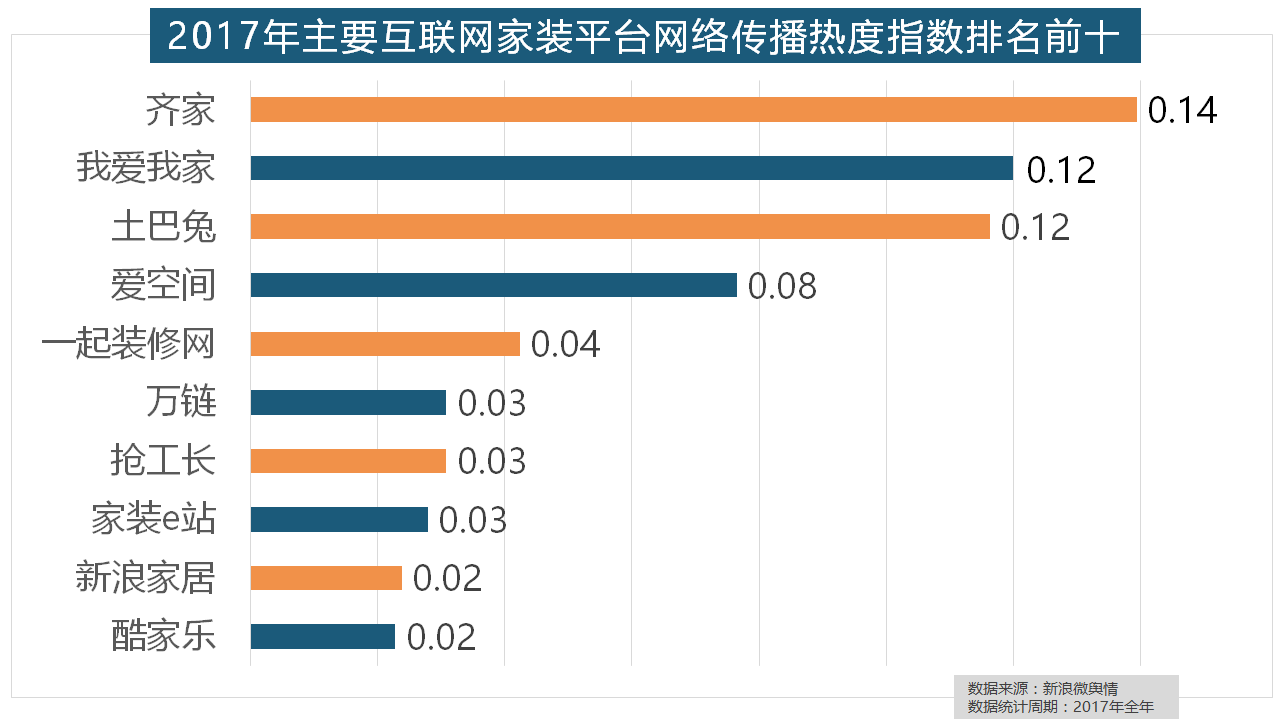 万链、抢工长、家拆e坐、新浪家居、酷家乐正在年度互联网家拆平台热度榜上排名第六到第十位。