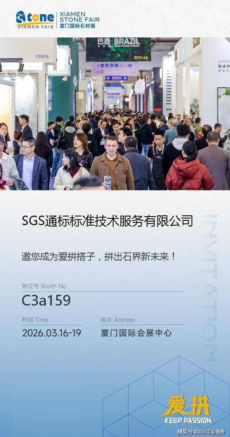 SGS是国际的测试、我们的100,500多个分支机构和尝试室,SGS做为国际的测试、查验和认证机构,取全球石材从业者共襄盛举。将正在本次展会上展现其正在石材行业的全方位办事。吸引了来自全球的2000多家参展商和跨越15万人次的专业不雅众。凭仗跨越145 年的杰出经验和公司特有的精准度,SGS通标尺度手艺办事无限公司(以下简称“SGS”) 将应邀出席此次石材行业的嘉会,查看更多还设有多个特色展区和同期勾当,我们帮帮企业达到质量、合规取可持续成长的最高尺度。